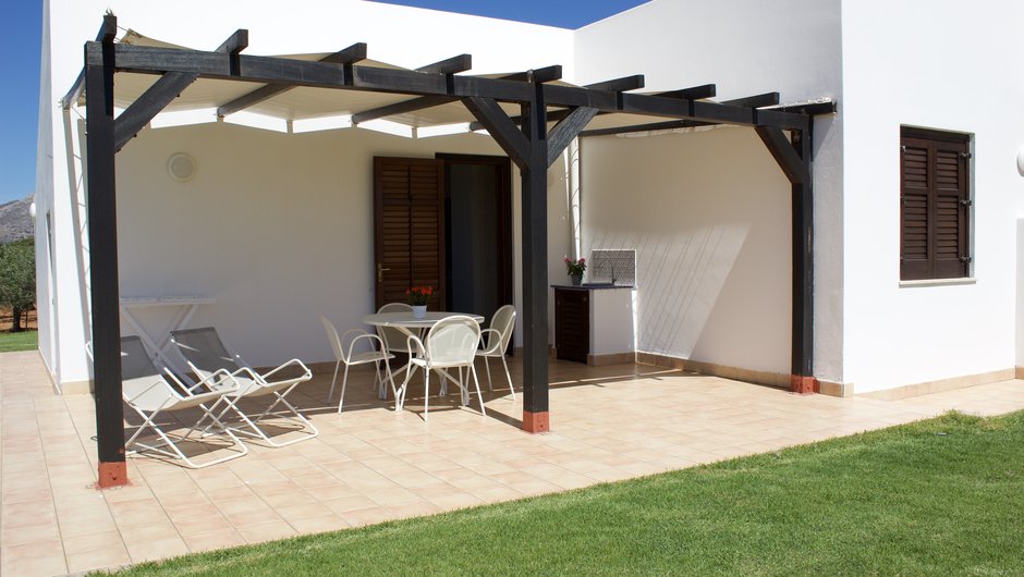 Con una superficie di 40 mq, la casetta è un bilocale spazioso e luminoso che può ospitare fino a 4 persone. Dispone di una camera da letto matrimoniale, di una cucina-soggiorno con due letti singoli, di un bagno con doccia e di un terrazzo privato affacciato su un prato inglese, perfetto per rilassarsi all’aria aperta, fare colazione o cenare immersi nel verde.